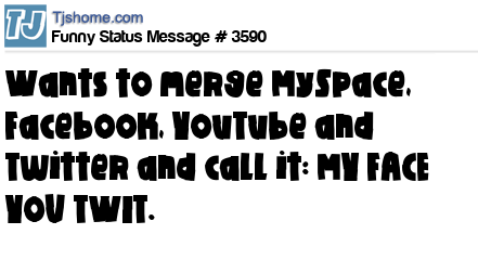 - # 34786 wants to merge MySpace, Facebook, YouTube and Twitter and call it: MY FACE YOU TWIT