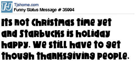 X says its not Christmas time yet and Starbucks is holiday happy. We still have to get though thanksgiving people.