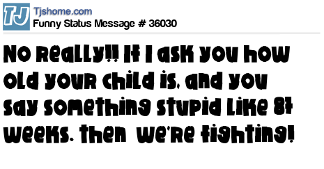 X says no really!! If I ask you how old your child is, and you say something stupid like 87 weeks. then we're fighting!