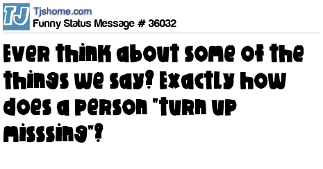 X is Ever think about some of the things we say? Exactly how does a person "turn up misssing"?