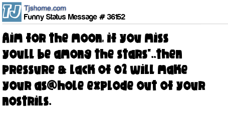 - # 134586 Shoot for the moon. Even if you miss, air pressure will suck your spine out of your butt, because you forgot to wear a spacesuit....... Idiot.