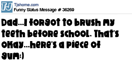 X Dad...I forgot to brush my teeth before school. That's okay...here's a piece of gum:)