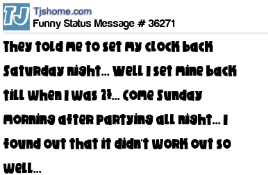 X They told me to set my clock back Saturday night... Well I set mine back till when I was 27... Come Sunday morning after partying all night... I found out that it didn't work out so well...