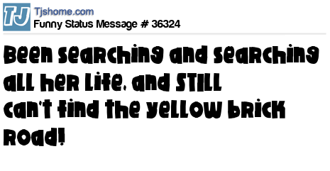 X has been searching and searching all her life, and STILL can't find the yellow brick road!