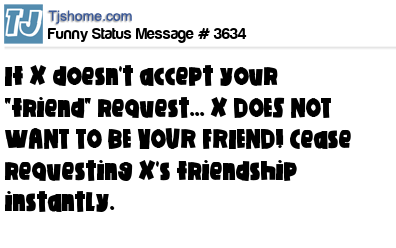 - # 62886 Dear girls, If a boy sends you a friend request, that means he wants to be your friend not your husband. That's why it says a friend request...