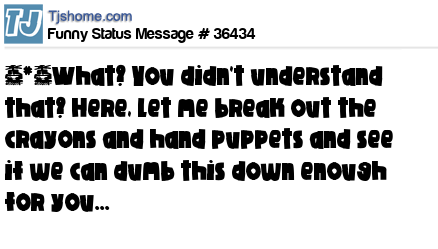 X is ~*~What? You didn't understand that? Here, let me break out the crayons and hand puppets and see if we can dumb this down enough for you...