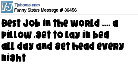 X is best job in the world .... a pillow ,get to lay in bed all day and get head every night