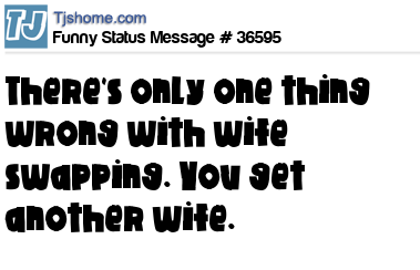 X says There's only one thing wrong with wife swapping. You get another wife.