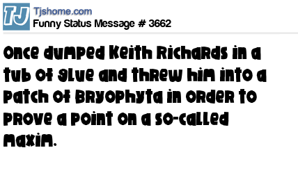 X once dumped Keith Richards in a tub of glue and threw him into a patch of Bryophyta in order to prove a point on a so-called maxim.