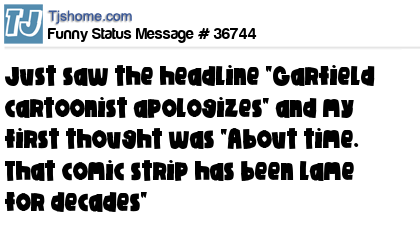 X just saw the headline "Garfield cartoonist apologizes" and my first thought was "About time. That comic strip has been lame for decades"