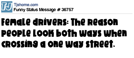 X Female drivers: The reason people look both ways when crossing a one way street.