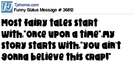 - # 77763 Most Fairy Tales begin with, "Once Upon a Time...” but mine starts with, "You ain't gonna believe this sh!t...”