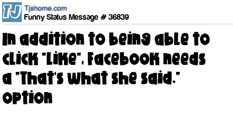 X says In addition to being able to click "Like", Facebook needs a "That's what she said." option