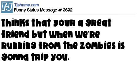 - # 172892 We might be best friends for life, but if we get chased by zombies, I will probably trip you. :)