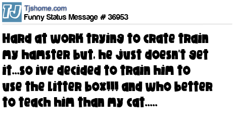 X is hard at work trying to crate train my hamster but, he just doesn't get it...so ive decided to train him to use the litter box!!! and who better to teach him than my cat.....