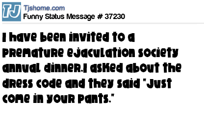 X I have been invited to a premature ejaculation society annual dinner.I asked about the dress code and they said "Just come in your pants."