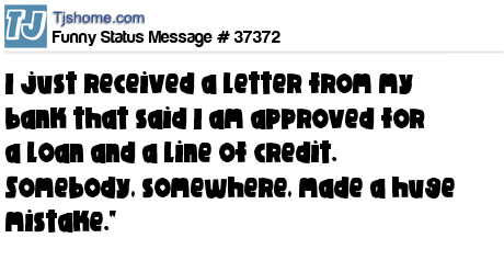 X is I just received a letter from my bank that said I am approved for a loan and a line of credit. Somebody, somewhere, made a huge mistake."