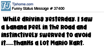 - # 60578 While driving yesterday I saw a banana peel in the road and instinctively swerved to avoid it…thanks Mario Kart.