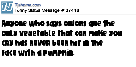 X says Anyone who says onions are the only vegetable that can make you cry has never been hit in the face with a pumpkin.