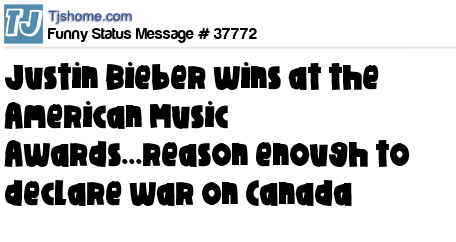 X is Justin Bieber wins at the American Music Awards...reason enough to declare war on Canada