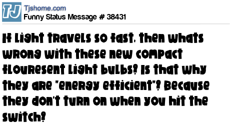 X If light travels so fast, then whats wrong with these new compact flouresent light bulbs? Is that why they are "energy efficient"? Because they don't turn on when you hit the switch?