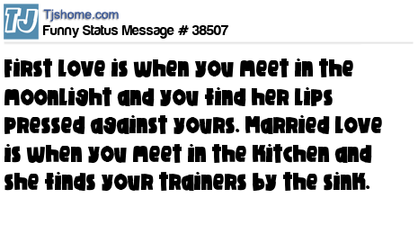 X is First love is when you meet in the moonlight and you find her lips pressed against yours. Married love is when you meet in the kitchen and she finds your trainers by the sink.