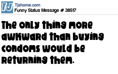 - # 188189 If you think buying condoms is awkward, try returning them.....
