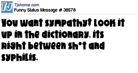 - # 21464 if your lookin for Sympathy it is in the dictionary between S*it and Syphilis...