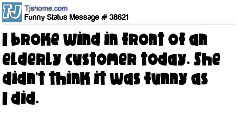 X is I broke wind in front of an elderly customer today. She didn't think it was funny as I did.