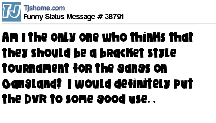 X Am I the only one who thinks that they should be a bracket style tournament for the gangs on Gangland? I would definitely put the DVR to some good use. .
