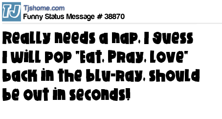 X is Really needs a nap, I guess I will pop "Eat, Pray, Love" back in the blu-ray, should be out in seconds!