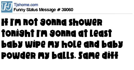 X is If I'm not gonna shower tonight I'm gonna at least baby wipe my hole and baby powder my balls. Same diff