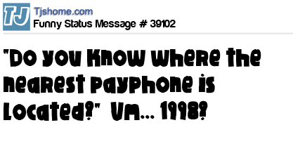 X "Do you know where the nearest payphone is located?" Um... 1998?