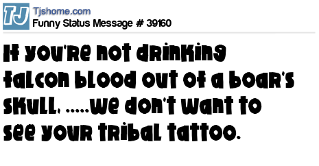 X If you're not drinking falcon blood out of a boar's skull, .....we don't want to see your tribal tattoo.