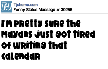 - # 85364 Im pretty sure the Mayans' calendar is wrong, I mean they DISAPPEARED a thousand years ago.