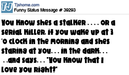 X says You know shes a stalker . . . . or a serial killer, if you wake up at 3 'o clock in the morning and shes staring at you. . . in the dark. . . . .and says. . . "You know that I love you right?"