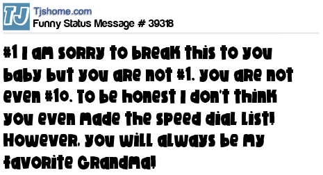 X #1 I am sorry to break this to you baby but you are not #1. you are not even #10. To be honest I don't think you even made the speed dial list! However, you will always be my favorite Grandma!