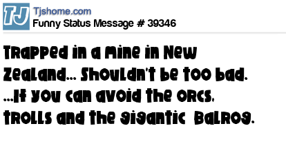 X is Trapped in a mine in New Zealand... Shouldn't be too bad. ...If you can avoid the orcs, trolls and the gigantic Balrog.