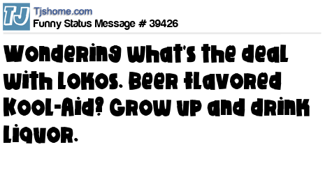 X is wondering what's the deal with Lokos. Beer flavored Kool-Aid? Grow up and drink liquor.
