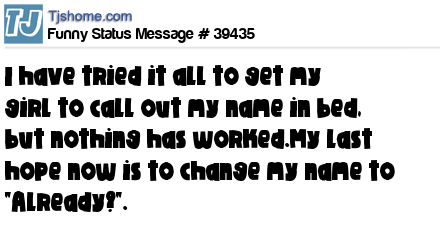 - # 47248 I have tried it all to get my girl to call out my name in bed, but nothing has worked.My last hope now is to change my name to "Already?".
