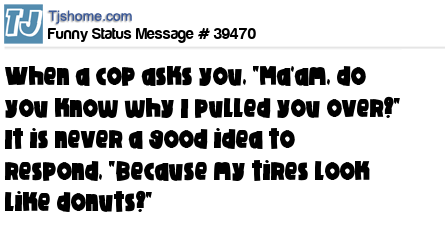 X When a cop asks you, "Ma'am, do you know why I pulled you over?" It is never a good idea to respond, "Because my tires look like donuts?"