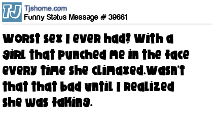 - # 195774 I once dated a woman who punched me in the face ever time she'd climax. I freaked when I discovered she was faking them.