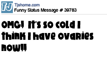 Obviously, 29 of you don't get this one. it's funny as hell! it's so cold your testicles draw up into your body (like ovaries).
