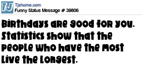 - # 127193 Birthdays are good for your health. Studies have shown that people who have more birthdays live the longest.