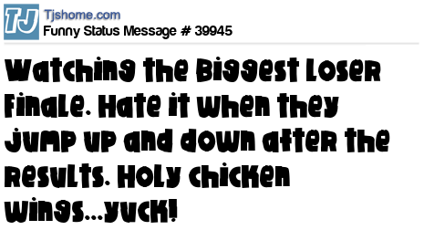 X Watching the Biggest Loser Finale. Hate it when they jump up and down after the results. Holy chicken wings...yuck!