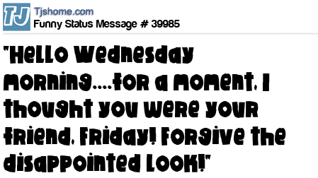 X says "Hello Wednesday morning....for a moment, I thought you were your friend, Friday! Forgive the disappointed look!"