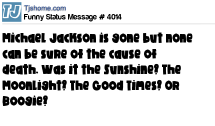 X Michael Jackson is gone but none can be sure of the cause of death. Was it the Sunshine? The Moonlight? The Good Times? Or Boogie?