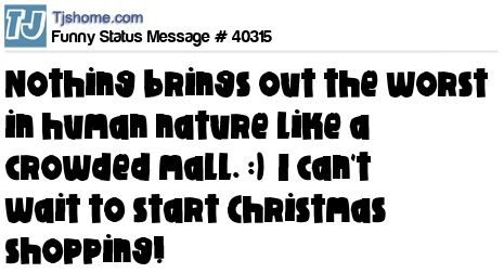 X Nothing brings out the worst in human nature like a crowded mall. :) I can't wait to start Christmas shopping!