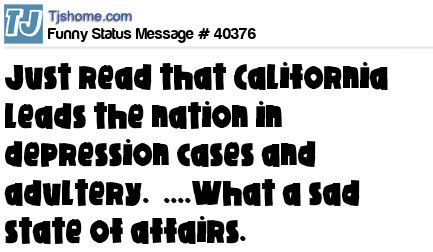 - # 140548 Apparently, California has the highest rate of Adultery and Depression. It's a sad State of affairs....