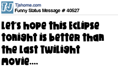X is Let's hope this Eclipse tonight is better than the last Twilight movie....
